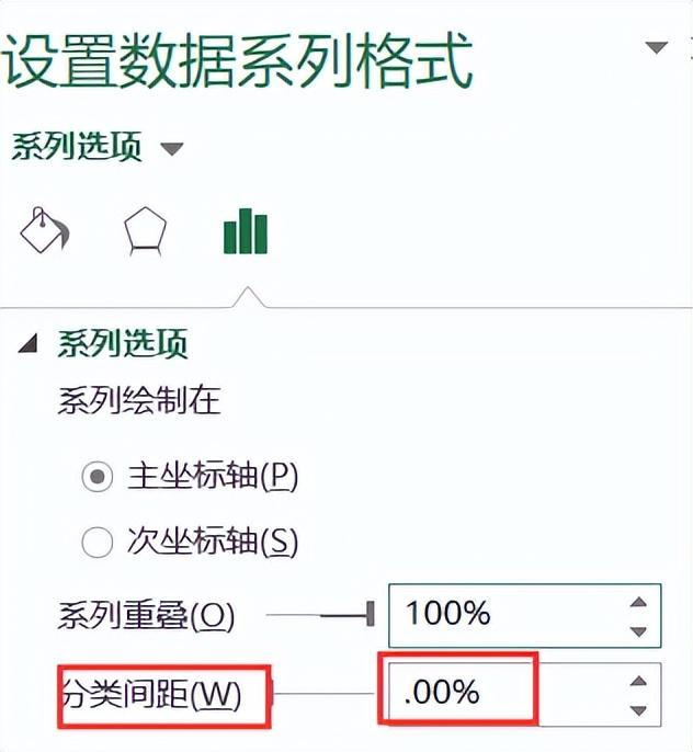 在堆积柱形图上点击鼠标右键菜单”设置数据点格式(F)…“,设置如下: