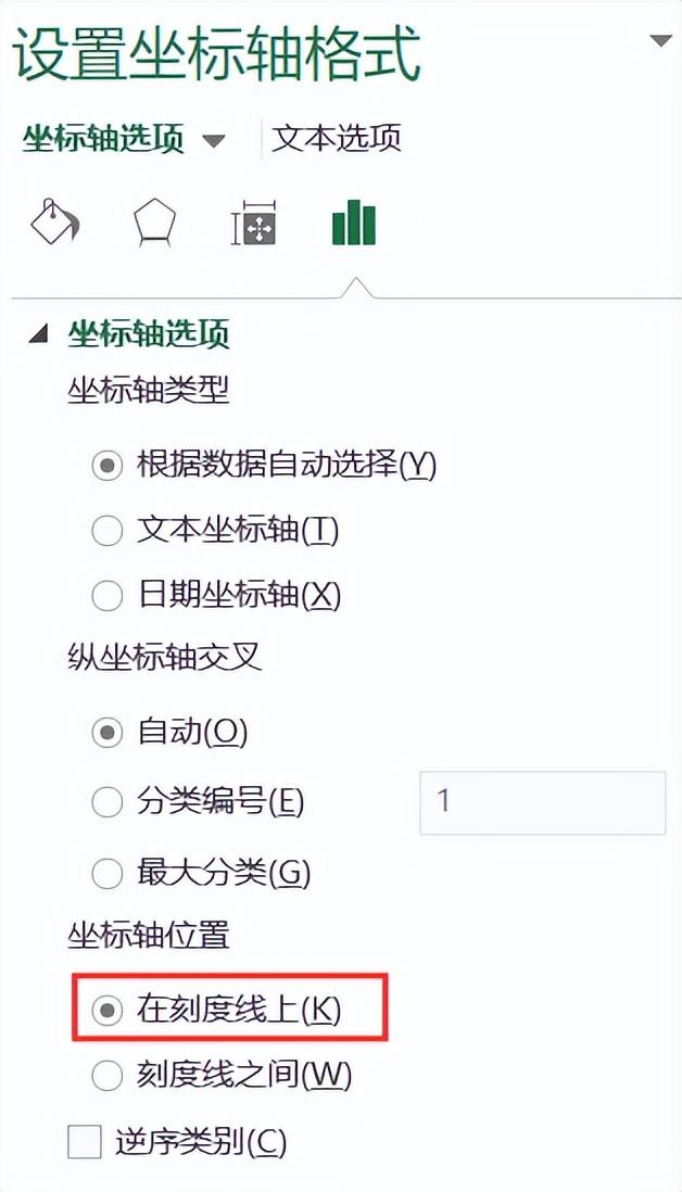 在横坐标区点击鼠标右键菜单“设置坐标轴格式(F)…”,设置如下: