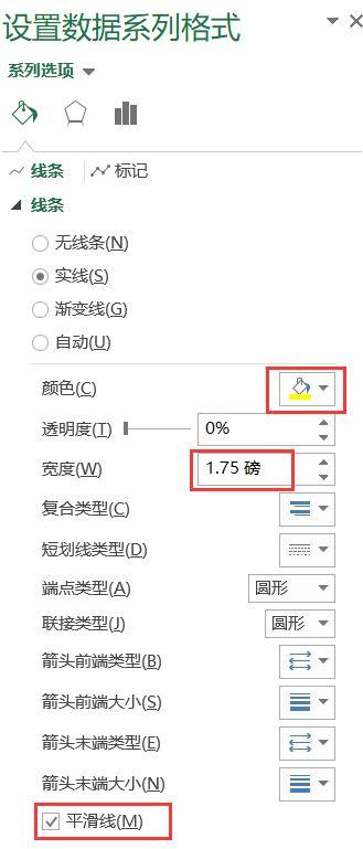 在刚生成的蓝色趋势线上点击鼠标右键菜单“设置数据系列格式(F)…”,设置如下: