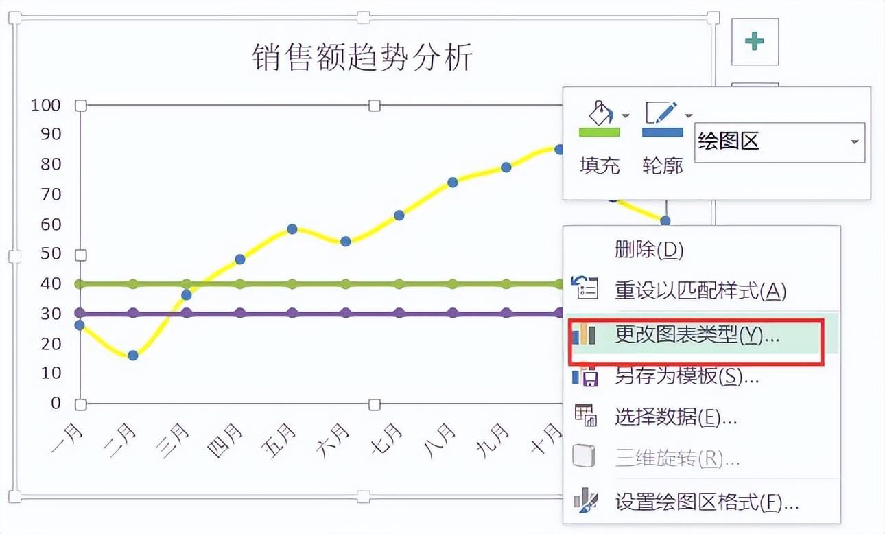 在趋势图上点击鼠标右键菜单“更改图表类型(Y)…”