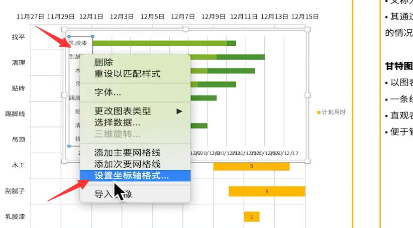 6、调整横纵坐标轴的方向。选中项目标签,右击,选择设置坐标轴格式: