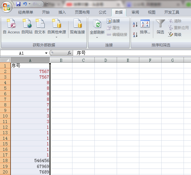 如何将Excel中同一列的重复数据筛查出来?