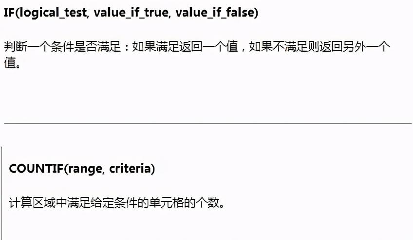 3.公式含义:(01)COUNTIF函数的用法:COUNTIF(范围,条件),通过该函数可以得到符合条件的数据在范围中出现的次数,简单来说通过这个函数可以进行条件计数;(02)IF函数的用法:IF(条件,满足条件的结果,不满足条件的结果),该函数可以理解为如果赋予IF一个条件(第一参数),当条件成立的时候给返回一个结果(第二参数),当条件不成立的时候返回另一个结果(第三参数)。简单来说,通过判断,符合条件的返回第一个值,不符合条件的返回第二个值。