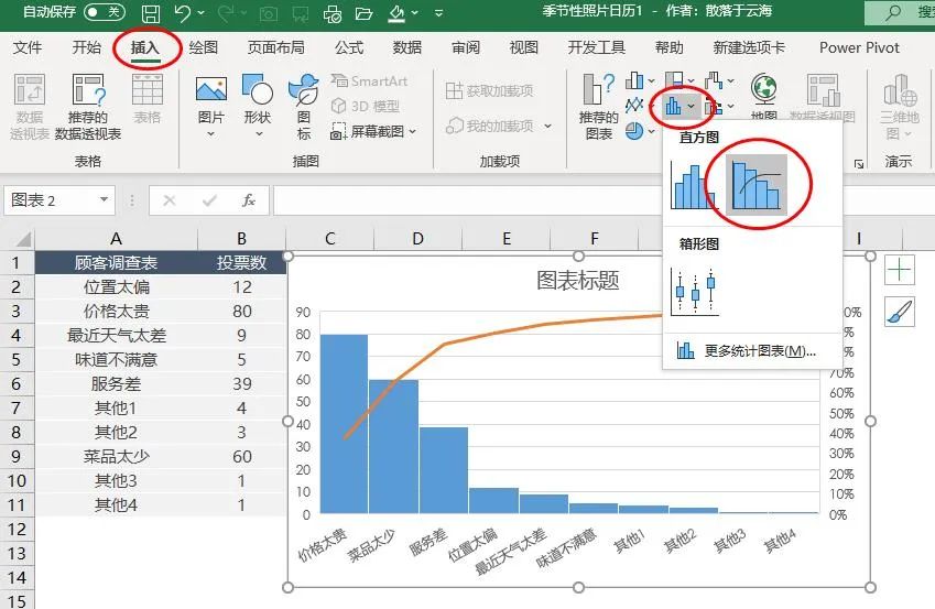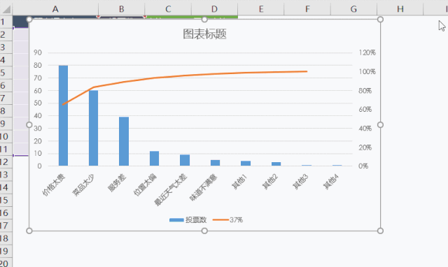 在图表中,柱子是排序后的投票数,而折线则是累计占比。
