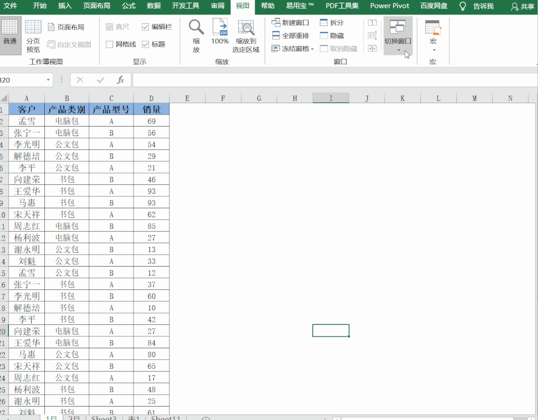 当我们有两个工作表,现在要同时查看两表数据,那么我们可以使用多窗口查看。