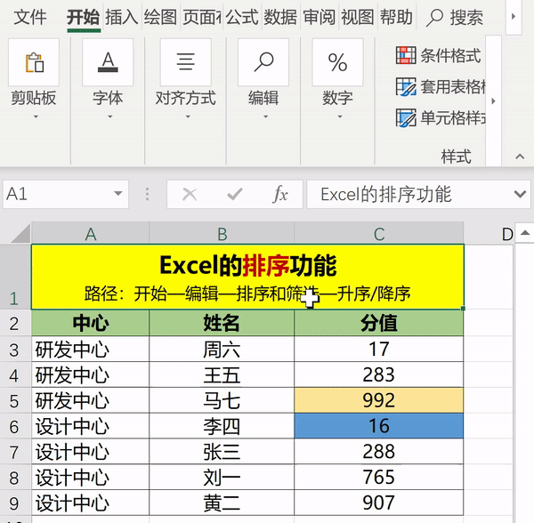 在Excel中,这个功能的使用路径为:开始——编辑——排序和筛选——降序/升序/自定义排序。