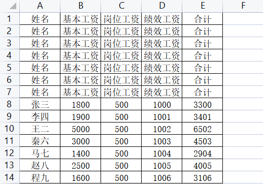 我们要把工资表做成一行标题一行工资数据的形式,如何处理呢?