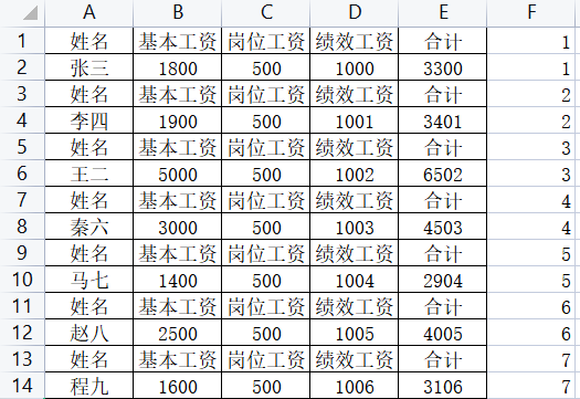 电子版的工资条就做好啦!下面请将F列的数据删除,把工资条打印出来,剪刀裁完就可以发给同事们咯。