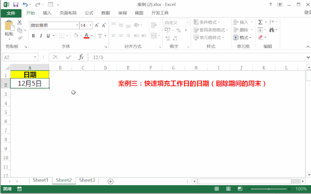 案例三:快速填充工作日的日期(剔除期间的周末)