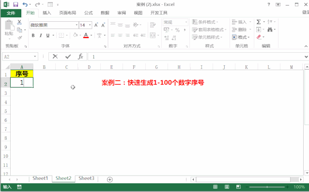 案例说明:生成100个数字序号跟10个数字序号有明显的不同,因为数字太多我们不能一直往下拖动生成序号。在这里我们就需要将通过序列填充的方式来实现。