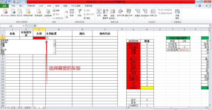 第二步:选择车型的L2 单元格(我这边需要添加的单元格)