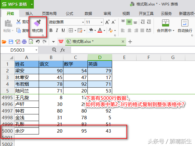 下表有5000行数据,请问如何将表中第2-3行的格式复制到整张表格中?