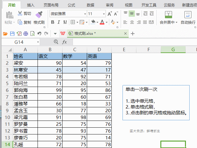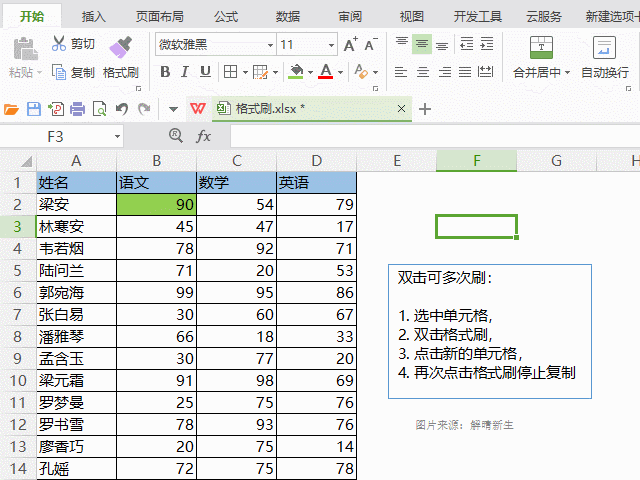 在Excel中选中单元格,双击格式刷,接着点击新的单元格,最后再按一下enter键,还可以复制内容。这个技巧相当冷门,wps不支持,我也觉得没什么用。