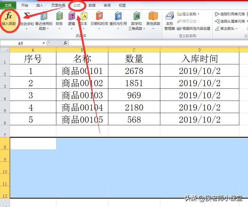 第1步:拖动选中要“转置”的空白单元格——>然后单击“公式”菜单下的“插入函数”选项;