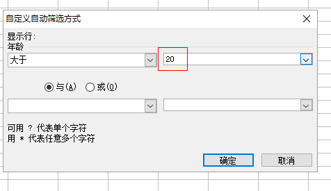 8、选择大于后,在其后面的输入数据 20,然后点击确定