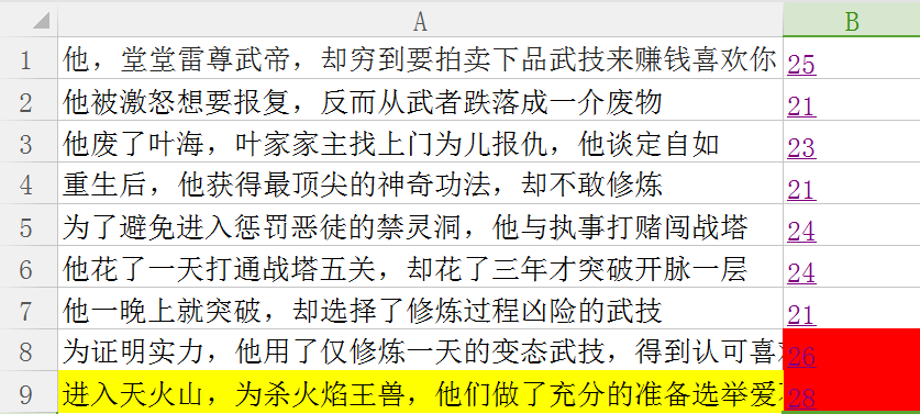 如图,A 1刚好25个字符,A2-A7没有超过,所以字符数可定少于25,A8、A9超过了,字符数就多余25个
