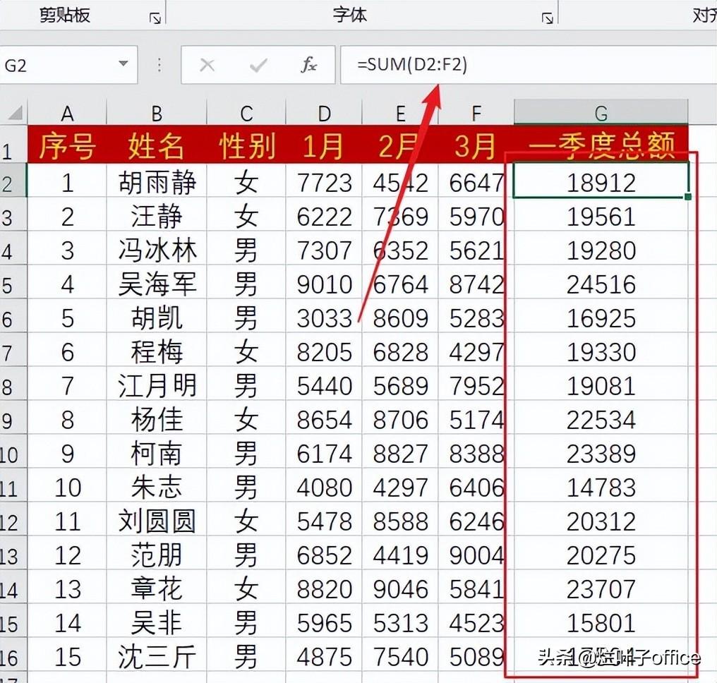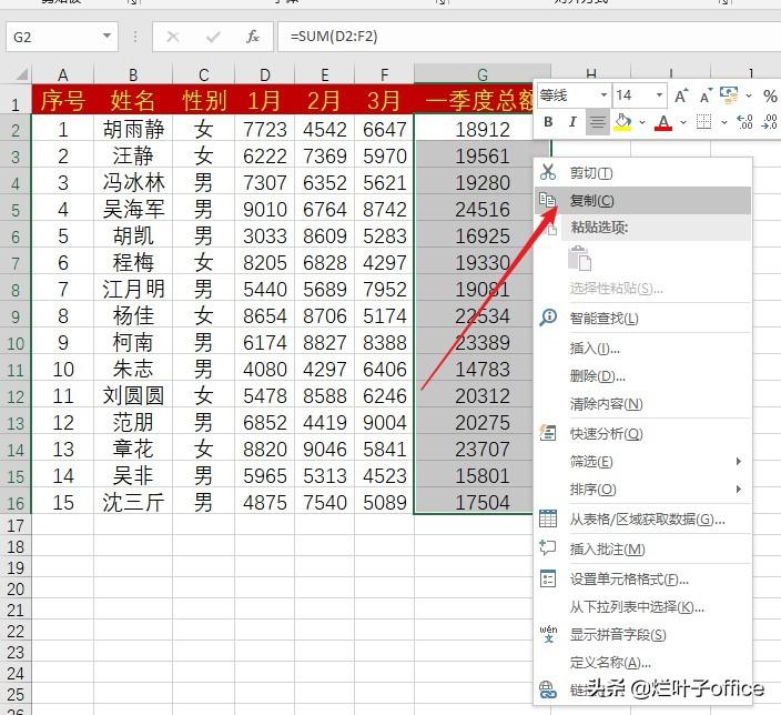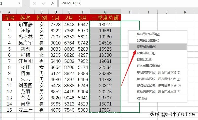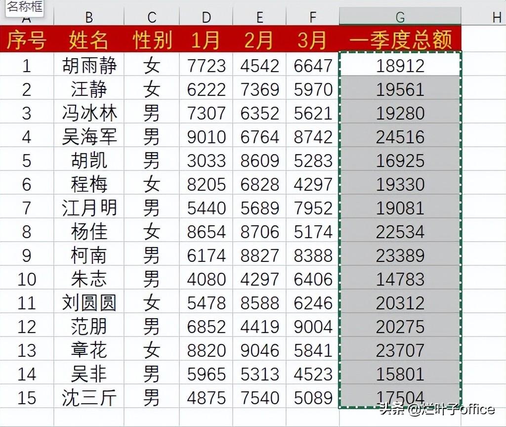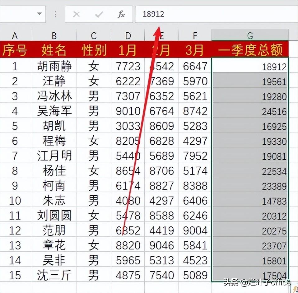 不论采用哪一种方法,都实现了如下图所示的结果,即“一季度总额”为数值。接下来就可以将此列数据随意复制到其他处了。