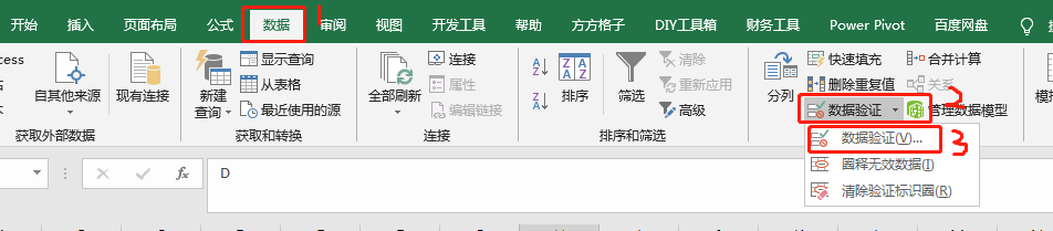 1、可以依次点击Excel菜单栏的数据选项-数据验证按钮-数据验证选项