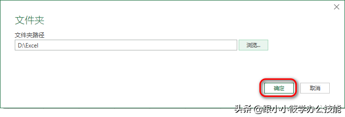4、点击“确定”按钮之后 — 返回到“文件夹”对话框 — 可以看到文本框中的路径就是工作簿所在文件夹的路径 — 点击“确定”按钮。