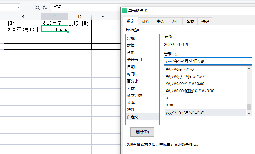 “月” 步骤1:设置C3=B3;步骤2:选定C3,点击右键,选择设置单元格格式,选择自定义;步骤3:将类型中的内容删除,重新输入M,或者M月、M”月”