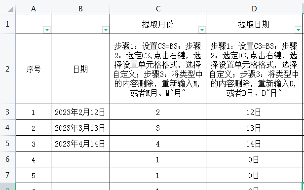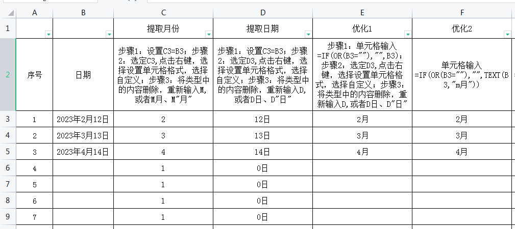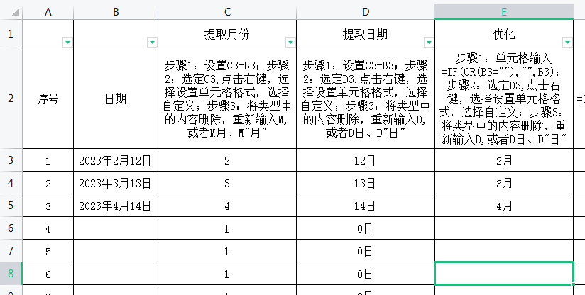以上两个方法,设置还是比较复杂,继续优化。单元格输入=IF(OR(B3=””),””,TEXT(B3,”m月”))