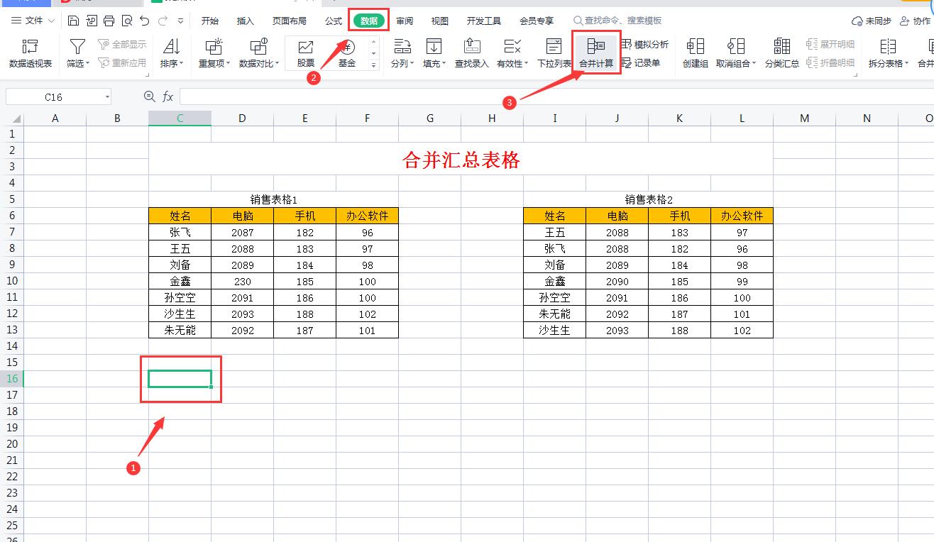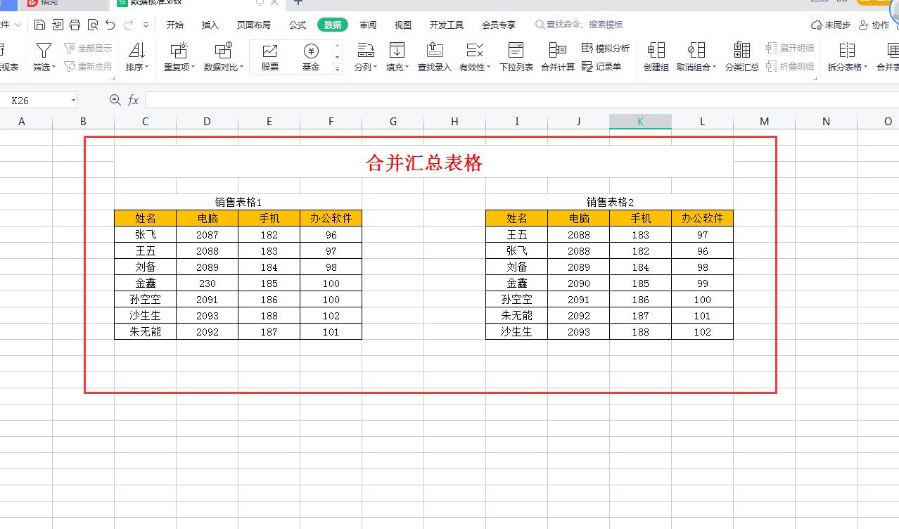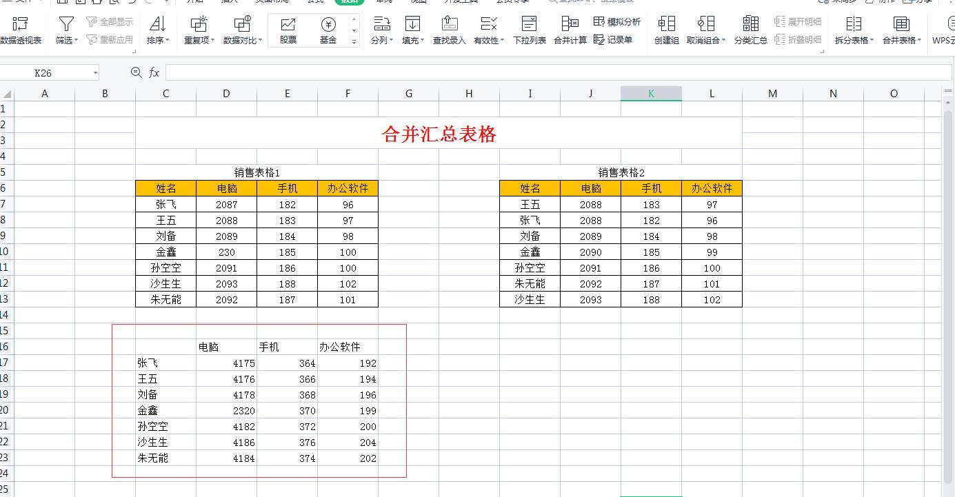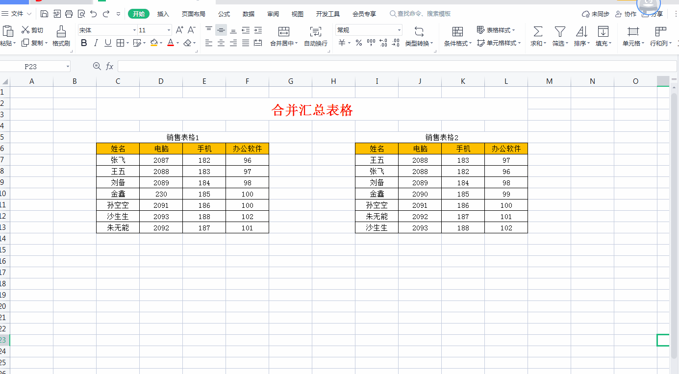 这样就完成的两个表格数据的合并计算汇总,完整操作步骤如下