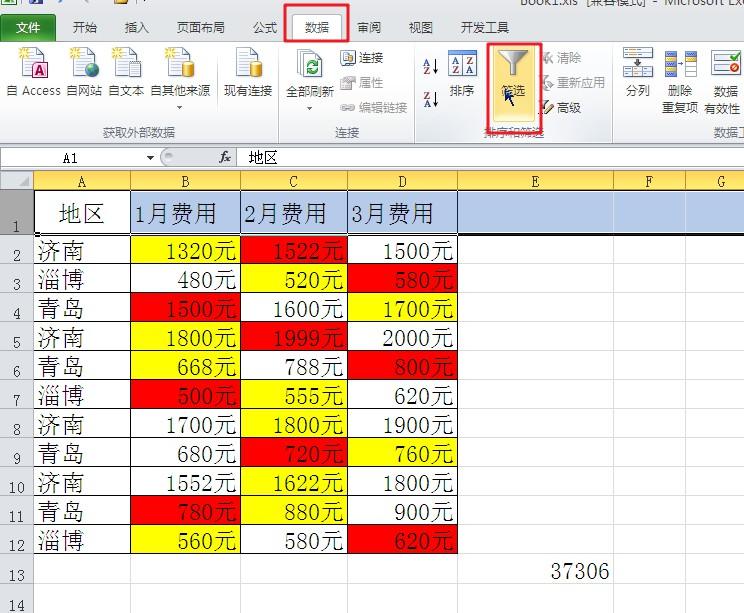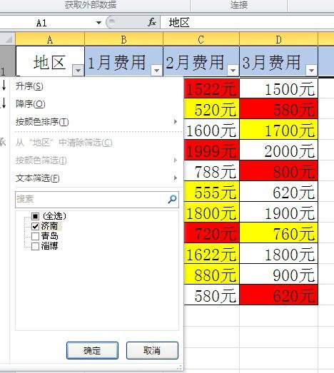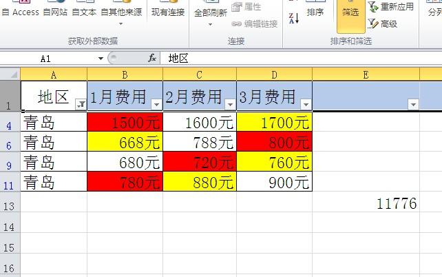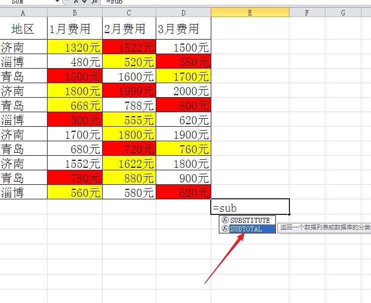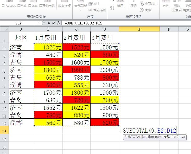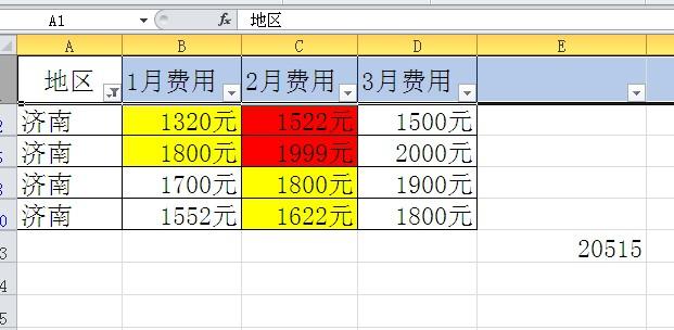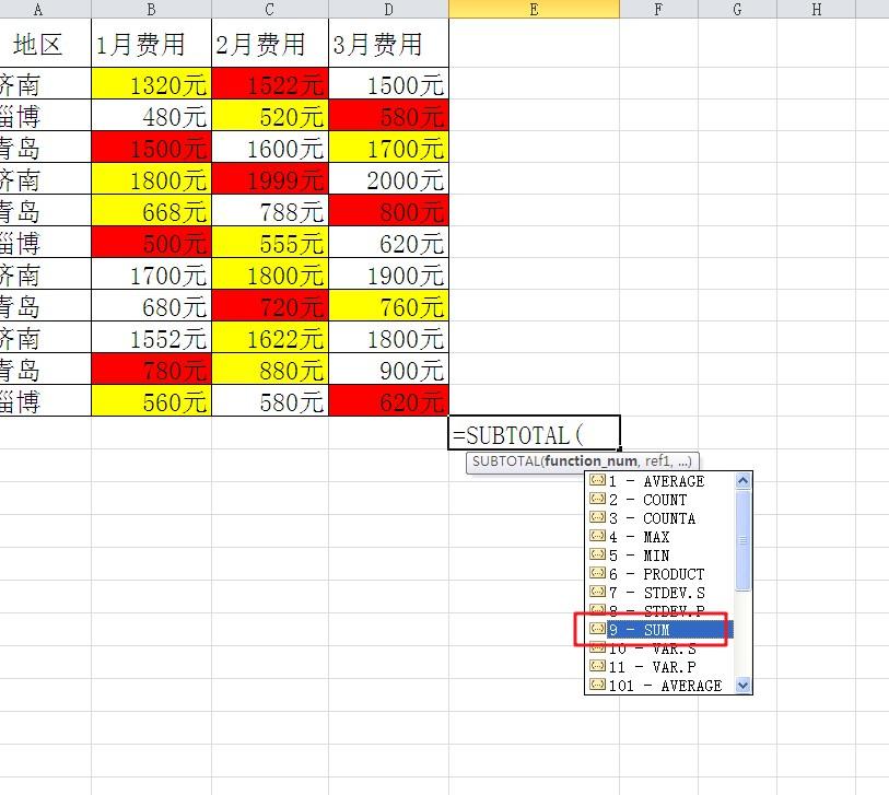 如图在一个EXCEL表格如何快速筛选求出济南、淄博、青岛三个地区各自的总费用呢?传统上我们可以先利用自动筛选,筛选出各个地区的数据,然后再ALT =快速求和,也不失为一种快速的方法,但每次都需要求和一次,下面演示一种先部分求和(SUBTOTAL)再筛选的方法: