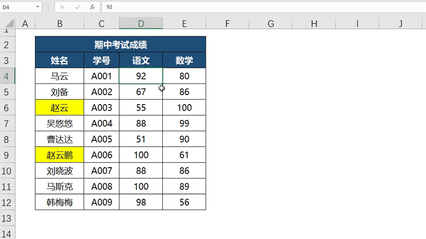 勾选【单元格匹配】,只会找到与查找内容完全一致的单元格,例如查找“赵云”时,“赵云鹏”不会被找到。