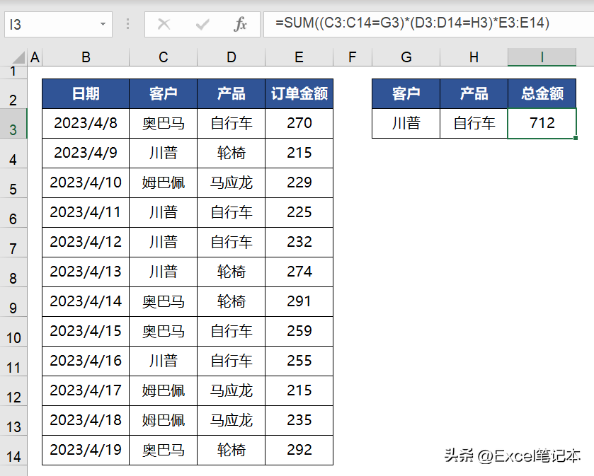 SUM实现条件求和模式化公式: