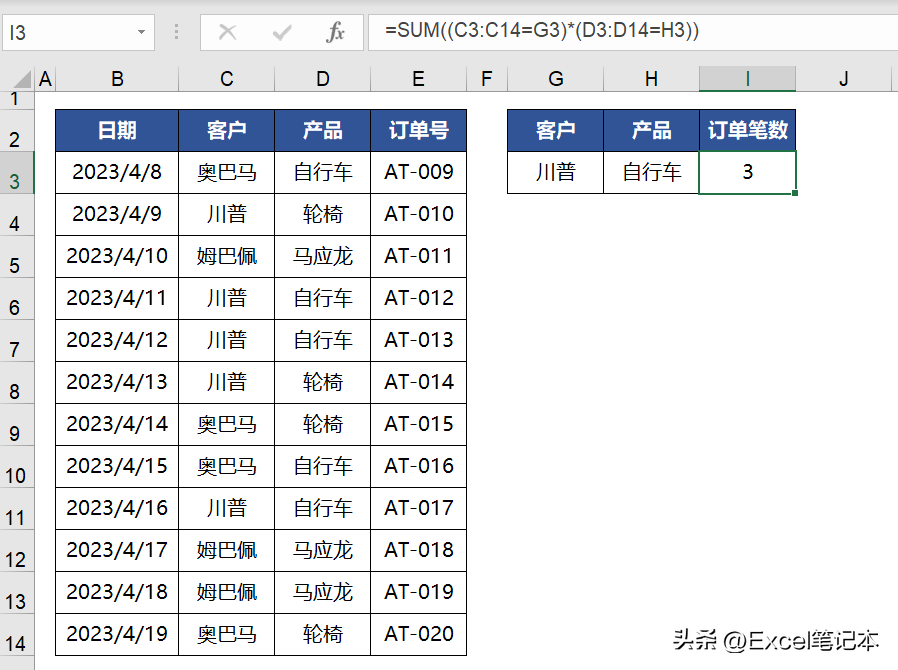 SUM实现条件计数模式化公式:
