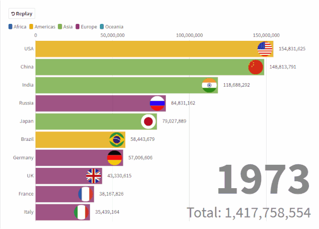 最近他们还推出了 column chart race,也就是柱形图版本的排名图。