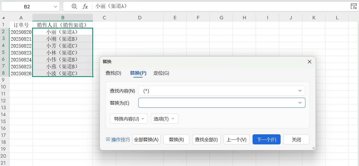 2.输入查找条件:在“查找内容”输入框中,准确输入“(*)”,该表达式可精准匹配所有括号及其内部的内容。