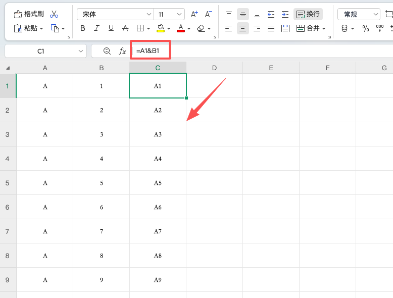 在C1单元格中输入公式: