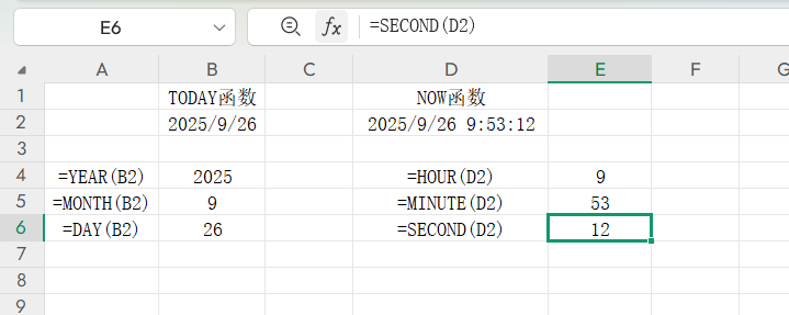 三、提取日期与时间信息的函数