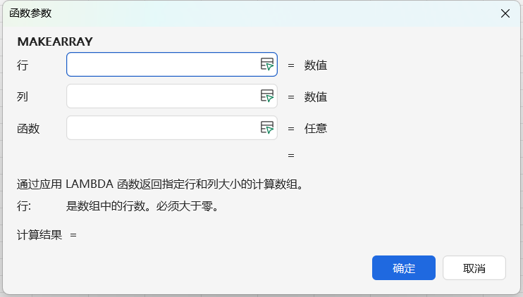MAKEARRAY函数的语法并不复杂,包含三个必须填写的参数: