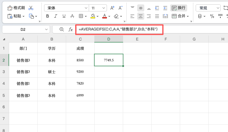 二、实例:计算“销售部3 + 本科学历”的平均业绩