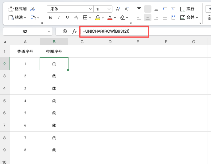 假设你的目标是在表格的 B2 至 B9 单元格中批量生成带圈数字,用于作为序号标识。传统方式一个一个插入符号非常耗时,而使用公式能快速完成。