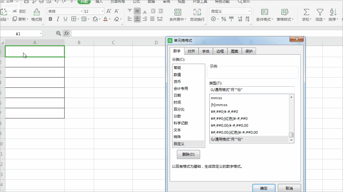 操作方法:快捷键Ctrl+1 打开设置单元格格式对话框,在自定义类型中输入:G/通用格式”月份”,然后在输入数字即可