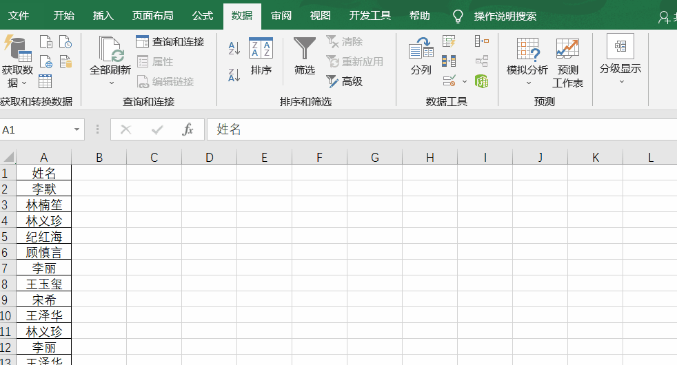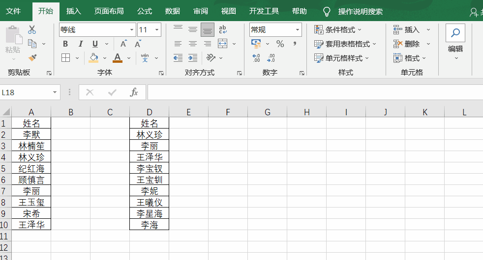 如何将Excel中所有相同数据筛选出来?如下图中的实例所示,将两列中相同的姓名提取出来,该怎样操作呢?