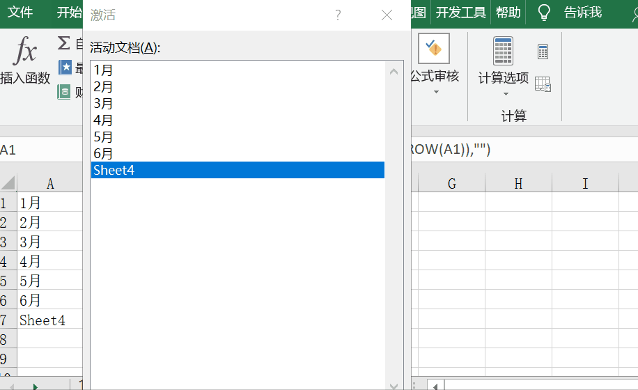 右击工作簿左下角的三角形,打开活动文档,如图所示: