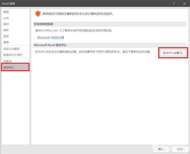 那就需要在Excel选项里面进行设置一下了。打开Excel的选项,找到信任中心,打开信任中心进行设置