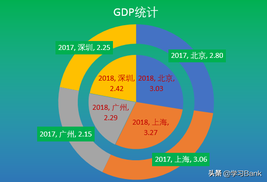 源数据为2017年和2018年北上广深4大城市的GDP数据。
