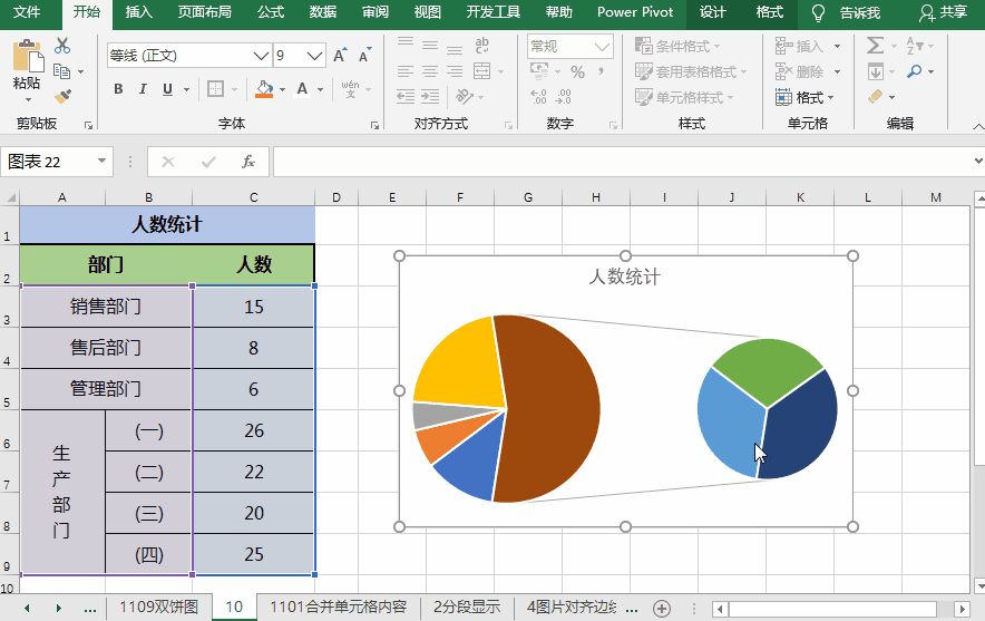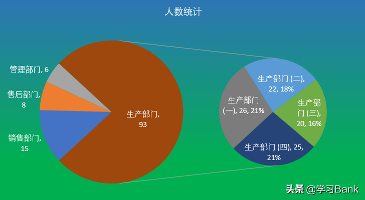 插入子母饼图或复合饼图——饼图数据标签设置——图表优化设置――图表修饰。