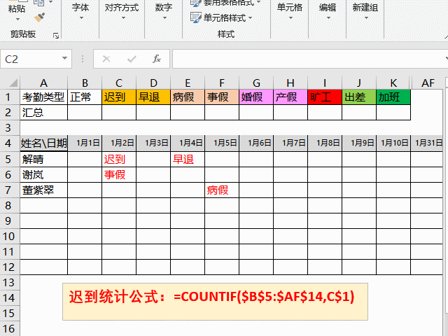考勤表的主要功能有:记录某人每天的考勤状态,统计每周/月/年的考勤状态。