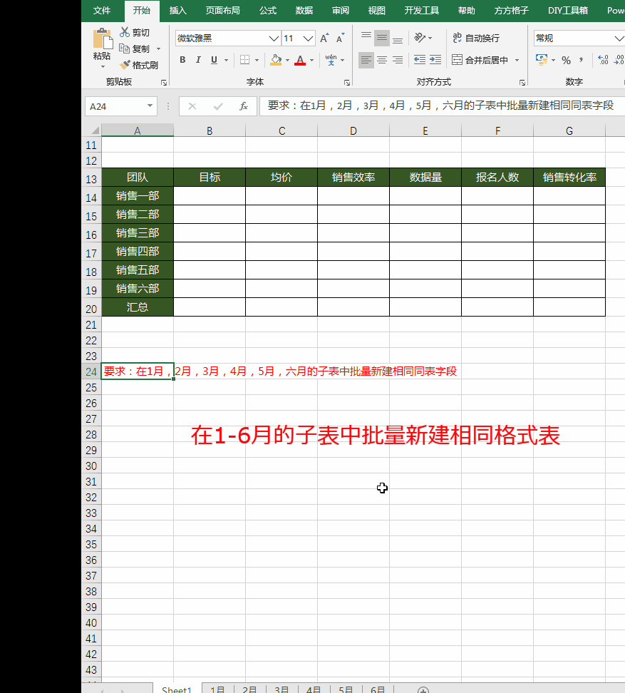 在使用Excel表的过程中,经常根据不用月份创建表格对数据进行记录,每个子表的表头都是一致的。下面的案例就是教你如何在工作表中快速新建表头: