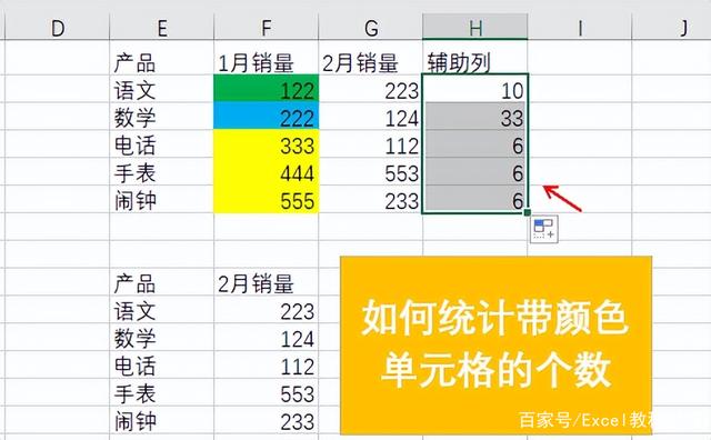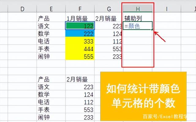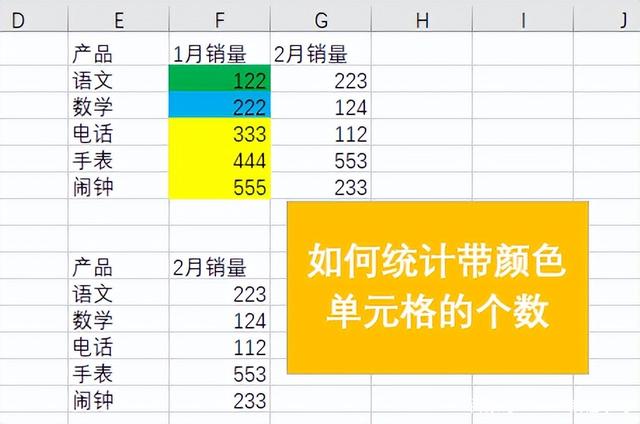 如在上图中,要统计F列1月销量中带颜色单元格的个数。