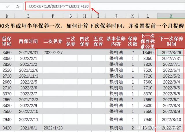 所以我们的正确思路是自动判断最后保养的时间,然后在此基础上加上180天,这样的计算才是准确的。
