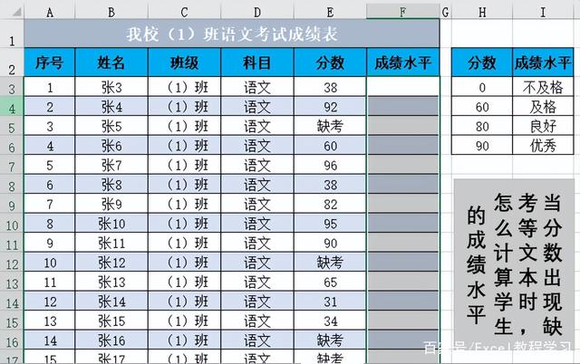 所以当学生缺考时,他的成绩水平就会返回“不及格”。