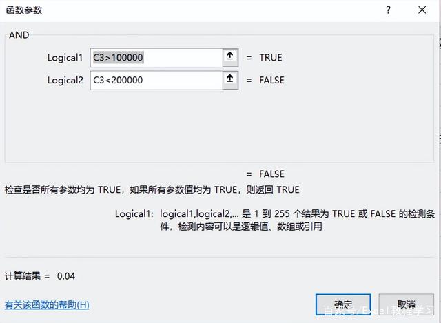 我们可以看到条件中“大于等于且小于20万”,包含“且”的表述,则表示要同时符合两个条件。在excel中,and函数可以用来判断两个条件是否同时成立,如成立,则返回结果“true”,不成立则返回结果“false”。