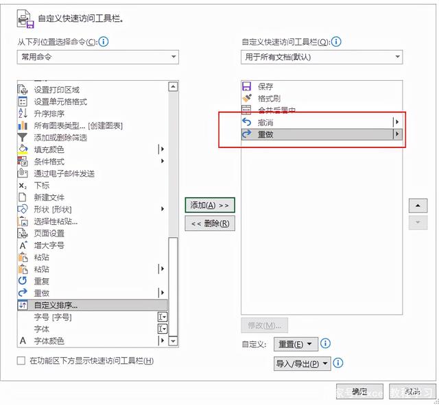 因此日常工作中我们可以直接使用快捷键来进行撤销和重做的操作,但如果更习惯于点击左上角的快捷图标,我们可以通过重新设置来显示撤销和重做。